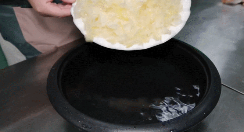 3. 汤锅内加冷水,放入银耳,银耳和水的比例为1:5,待烧开后调小火,用汤勺不断搅动。