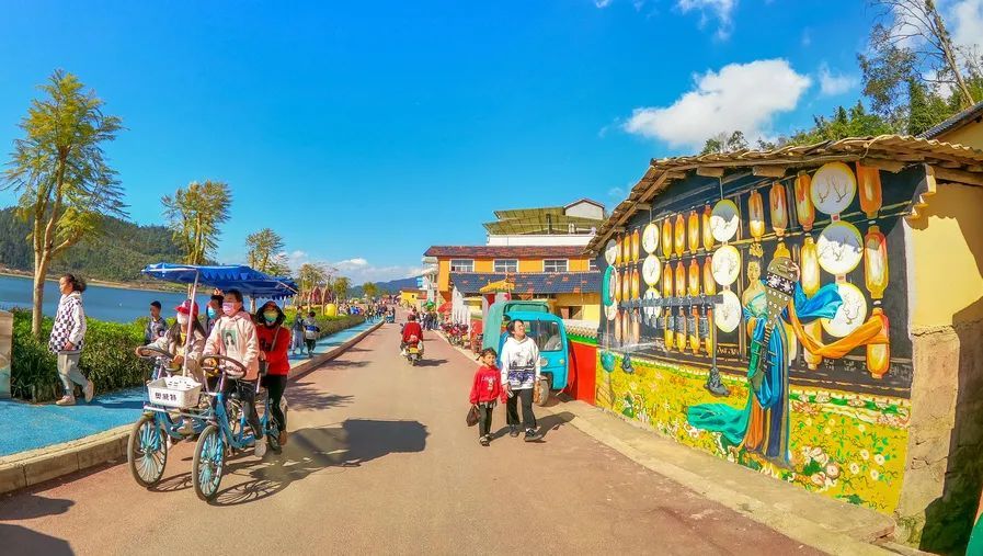 环境一天天好起来,乡村旅游的蓝图也在一点点成为现实。在上海资金的赋能下,龙马IP、花海、水池、沙池、休闲长廊、网红打卡点、步道、水幕灯光等设施陆续建成,“马小壮”和“虹小苗”的友谊故事在马关人民口中广为流传。白天,青山叠翠、碧波荡漾,孩子们在花海、沙池嬉戏玩耍,宛若一幅“水墨丹青画”;夜晚,月白风清、火树星桥,漫步村庄,唯美而又惬意。