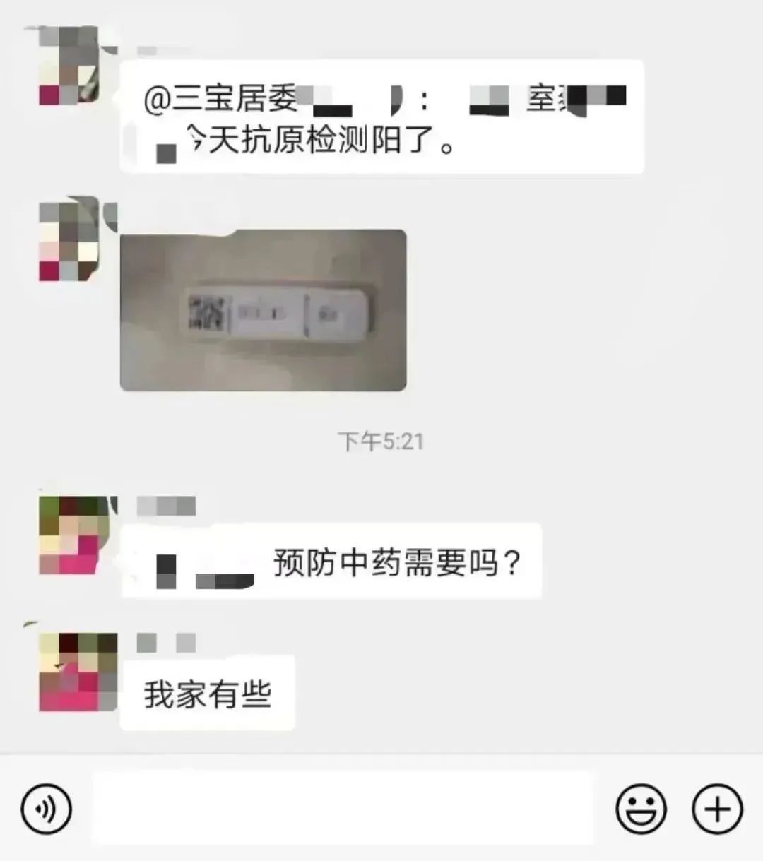12月22日晚,三宝花苑的居民刘彬彬感觉自己头疼得厉害,他印象中自己有备用的泰诺,但找到后发现,这盒药品已过期了半年多,他犹豫再三没有服用,并通过居民微信群留言问问大家有没有多余的感冒药和退烧药。