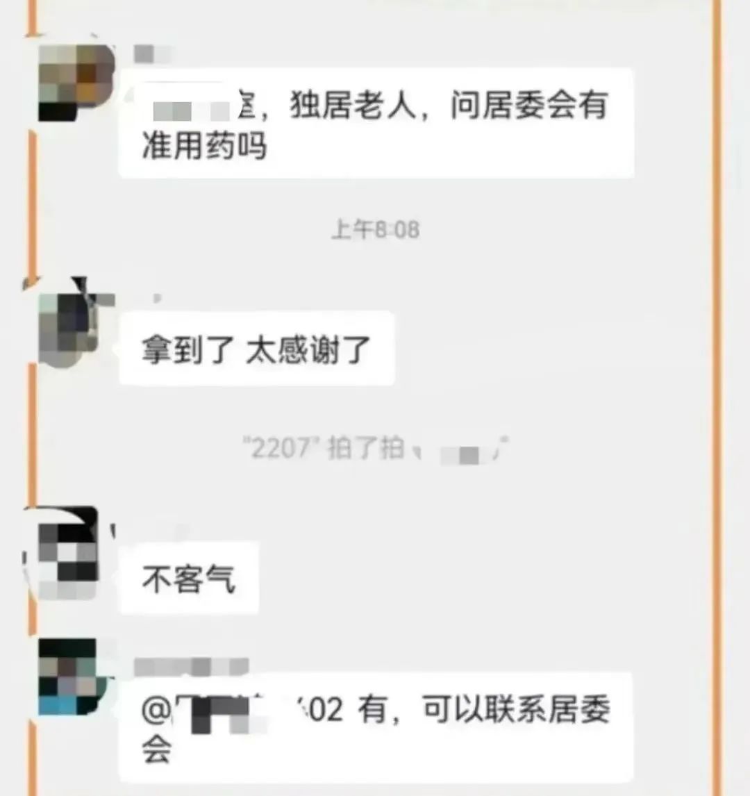 我后来在微信群里问过两次,但没有居民接话,大家都让我别管这么多,好好休息,早日康复。我非常感动。”