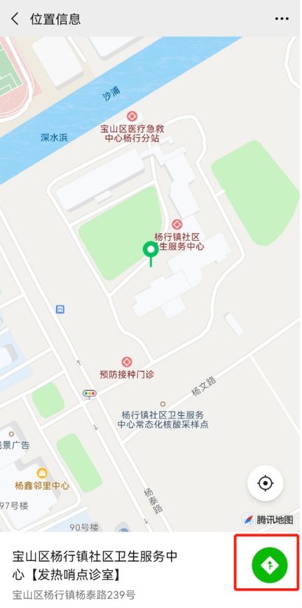 4、选择相应的发热就诊点位进入,可点击右方导航的图标,打开对应地图软件,可进行电子地图导航直达发热就诊点位。