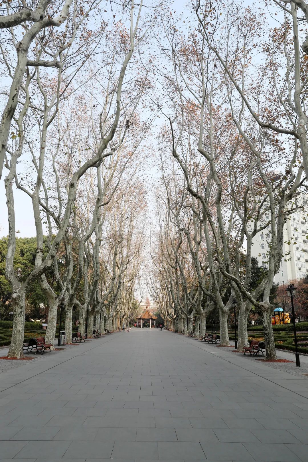 冬季时节走进襄阳公园,暖阳下的法国梧桐“林荫大道”让人难忘,虽然缺少绿色,但是也别有一番风味。值得一提的是,园中还藏着一个欧式风格的喷泉广场,加上一个绿色法式大草坪,处处都洋溢着精致的海派浪漫文化。