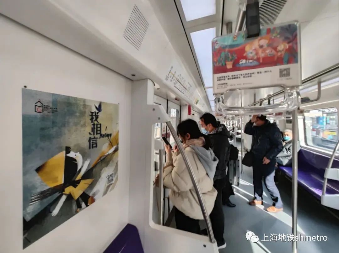 今年,陈伯吹专列同时在上海地铁1、2、3及7号线“上线”,每个列车中数百个拉手和车壁均被布置上了原创插画展历届优秀参展作品,并配合历届文学奖获奖作品金句,仿佛点亮了每个人童年梦想。