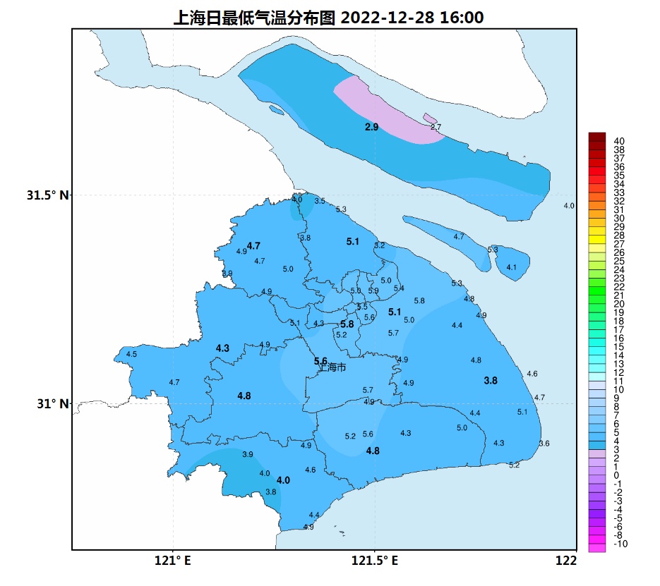 受雨带边缘影响,上海今天天空阴沉,上午以阴到多云为主,南部地区有短时小雨。早间气温依旧偏低,市区徐家汇站5.8度,郊区大多在2~6度之间。中午起随着雨带南压,雨止转多云到阴,徐家汇站白天最高气温定格在7.8度,体感湿冷。