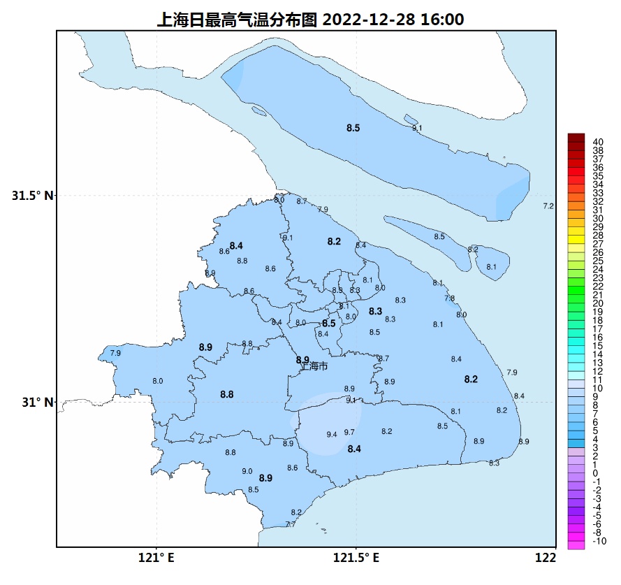 未来一周冷空气势力总体偏弱,2023年1月2日受弱空气影响,气温有小幅波动,最高气温降至9度附近。天气总体以多云为主,仅1月1~2日有一次小雨过程,晴冷湿冷来回切换。即将告别2022年,还是要注意做好防寒保暖工作。
