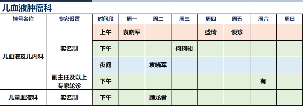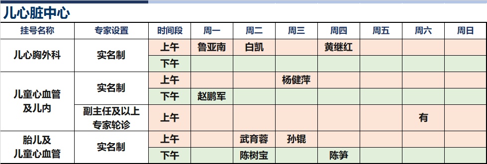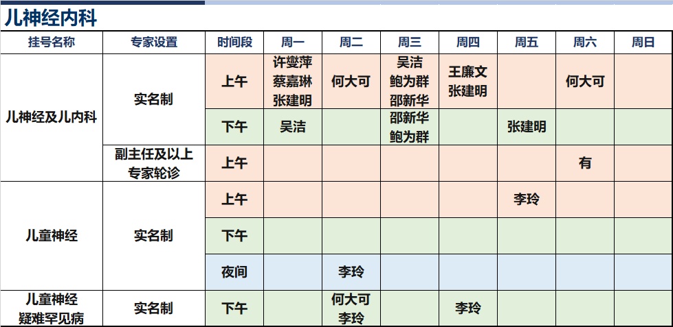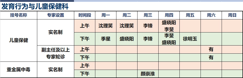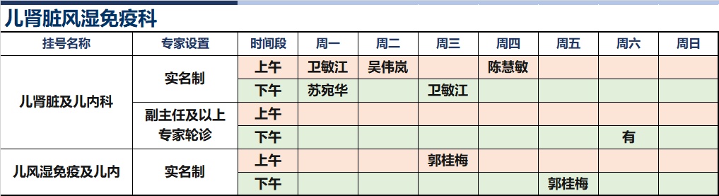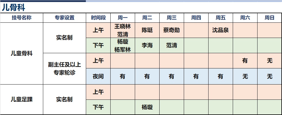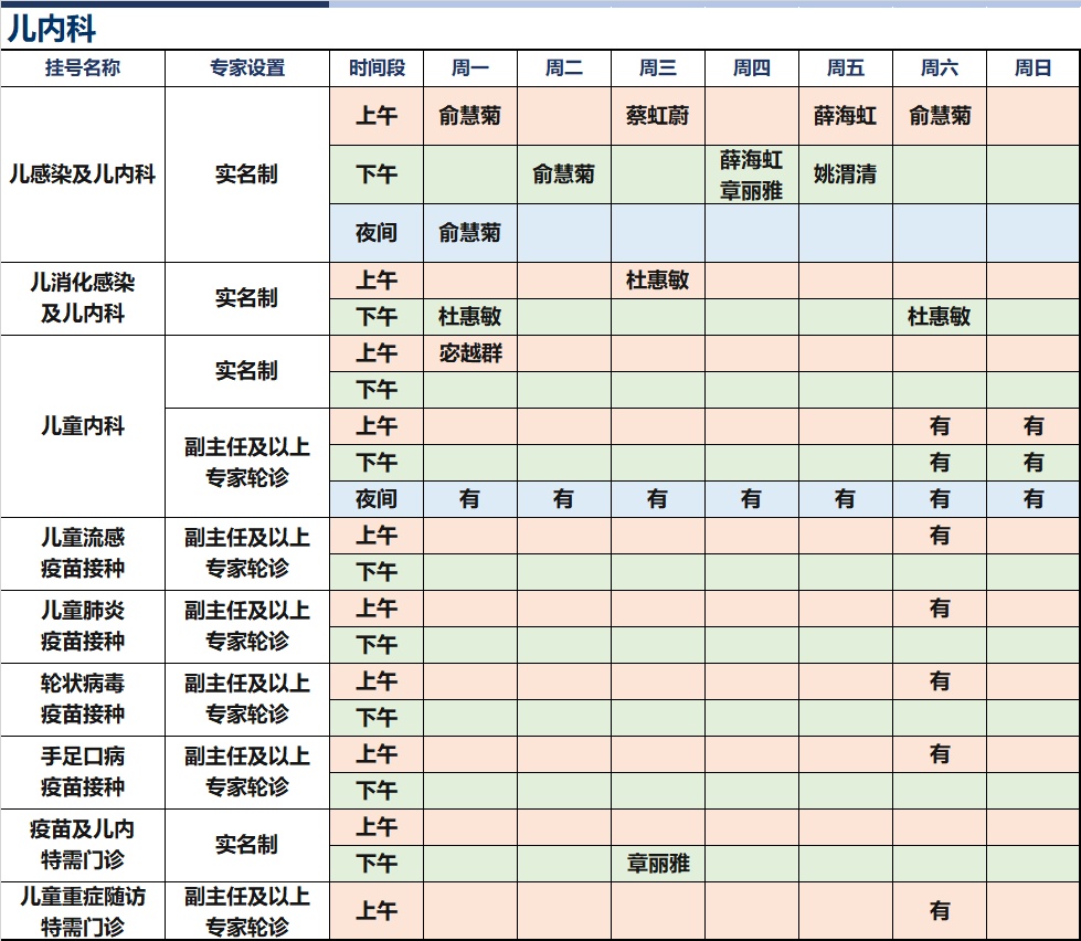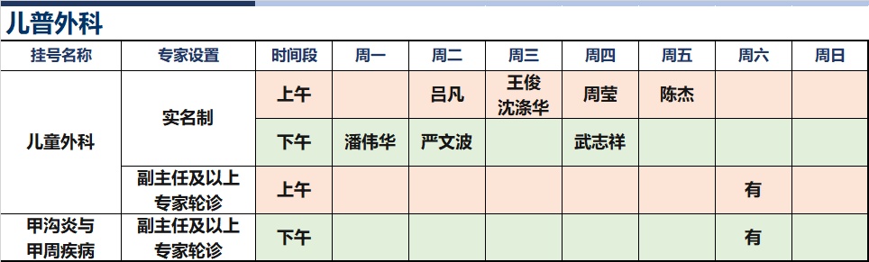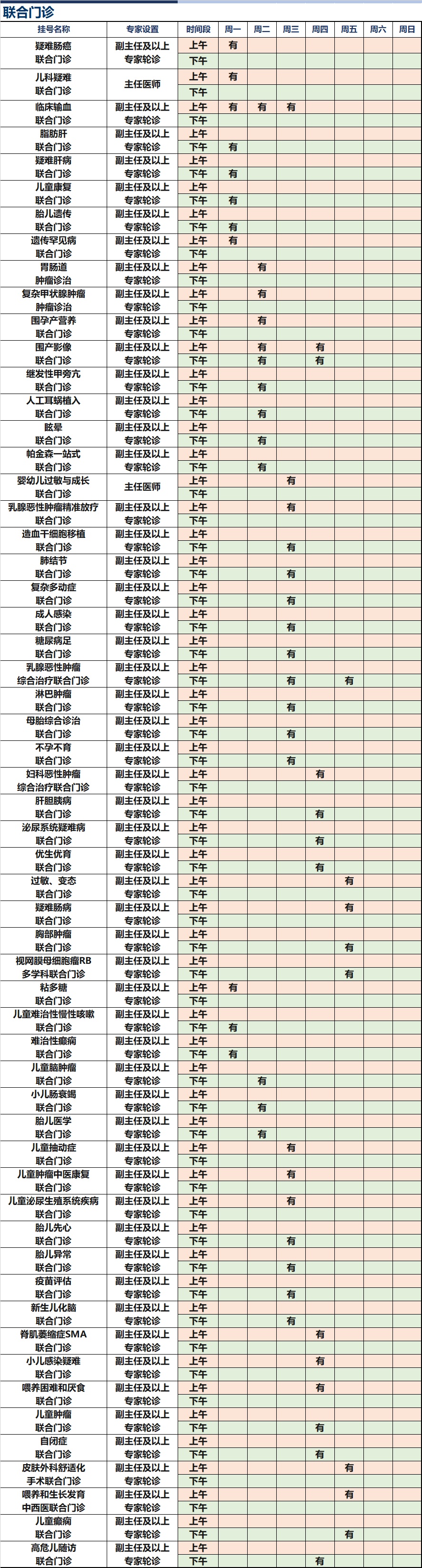 上海新华医院2023年1月份高级专家(特需)门诊一览表