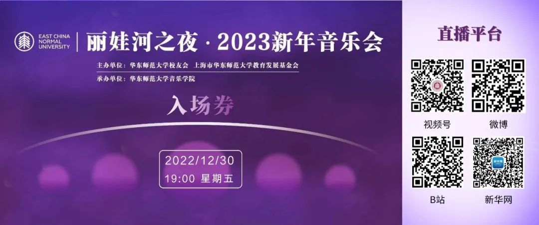 值此新年即将到来之际,丽娃河之夜·2023新年音乐会将于12月30日晚上演,本次新年音乐会采用线上直播方式举办。