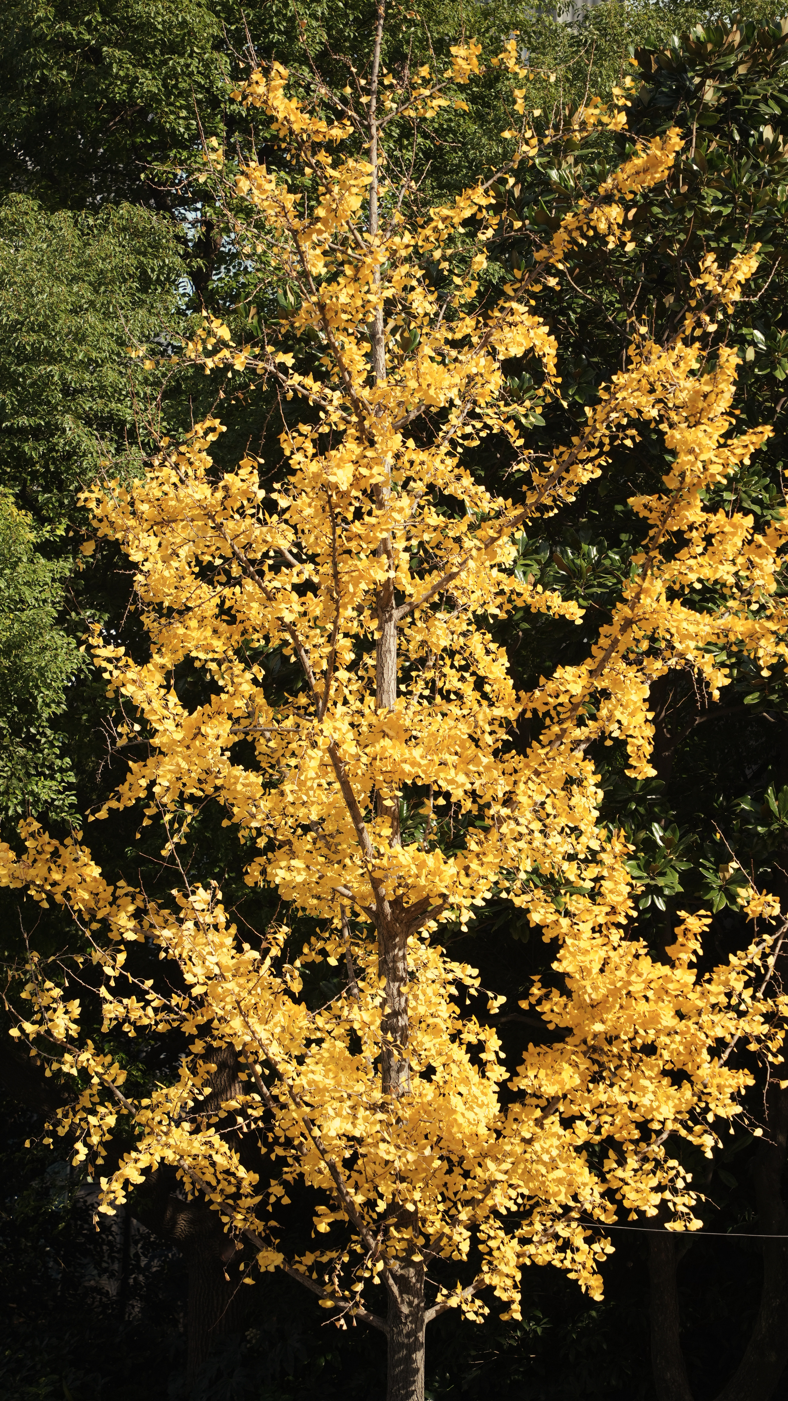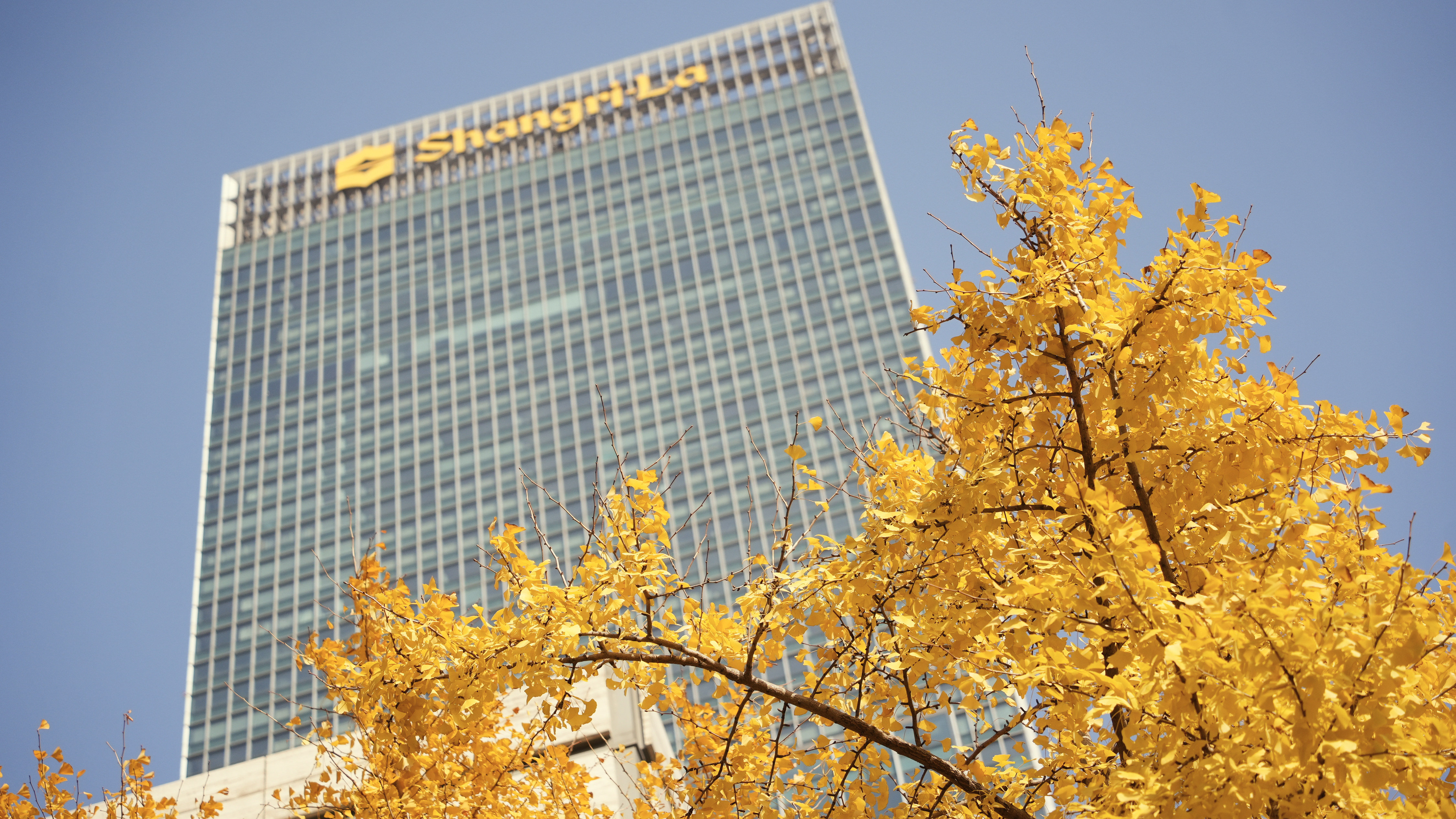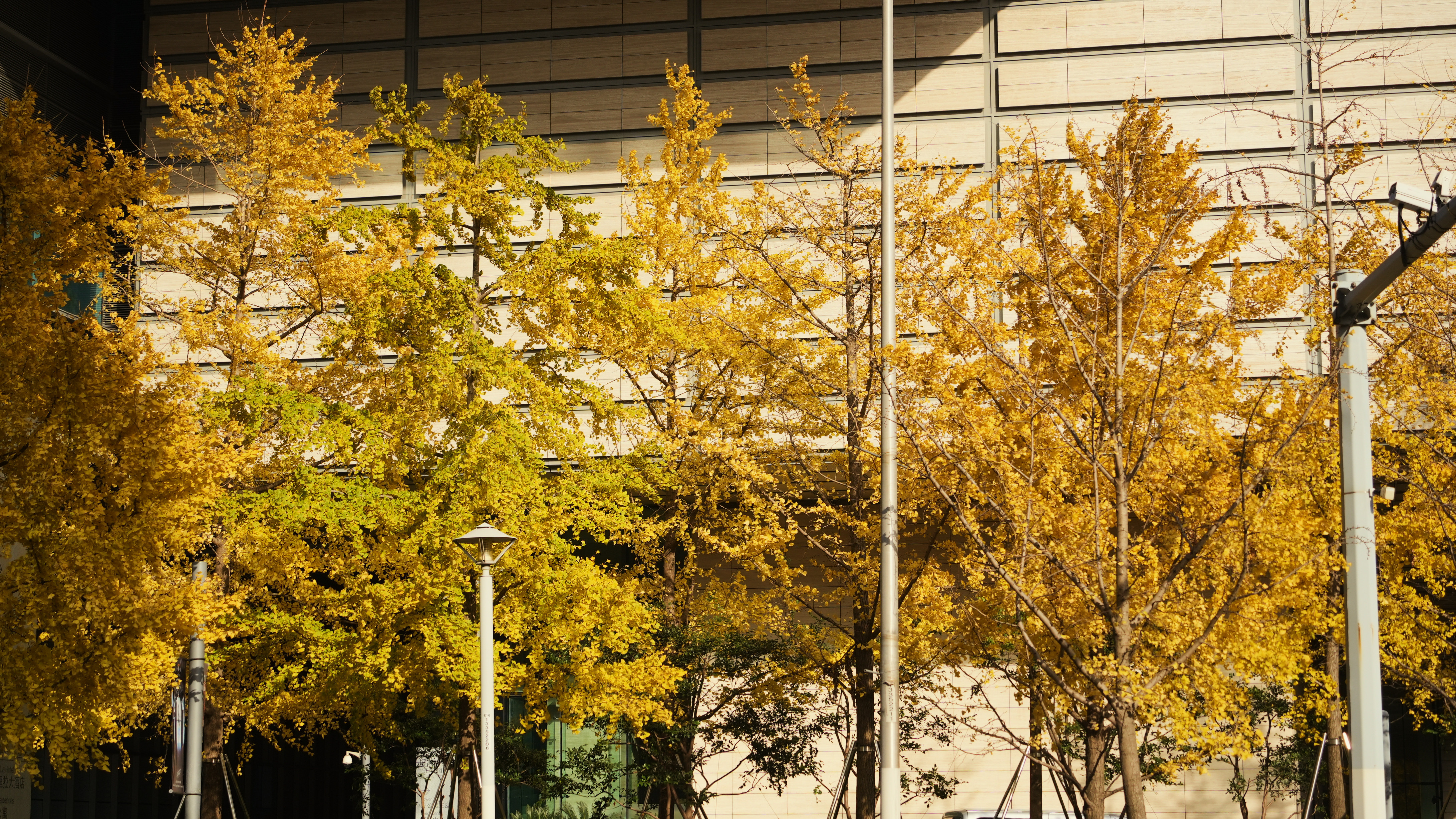 这片“银杏海”东西两侧分别为静安嘉里中心和越洋国际广场两幢高楼,南侧则是车辆川流不息的延安高架路和常德路延安中路路口。