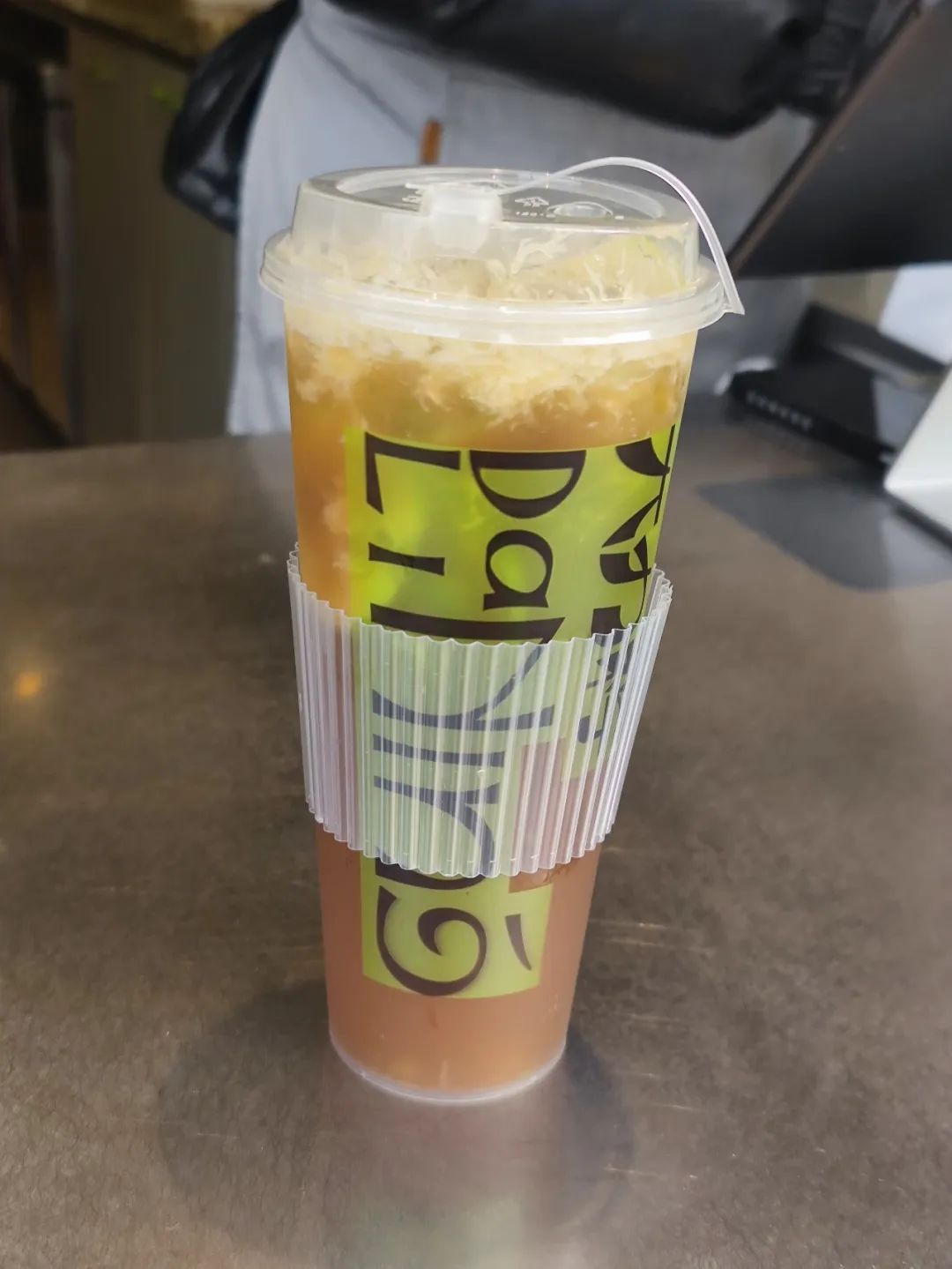 至于口味,是一种非常温润的感觉!雪梨有微微的甜味,内心也甜甜的。茶汤里有香水柠檬和茉莉绿茶,很清爽。店家提醒:如果点的是外卖,请在送到10分钟以内饮用完毕,以保证口感。