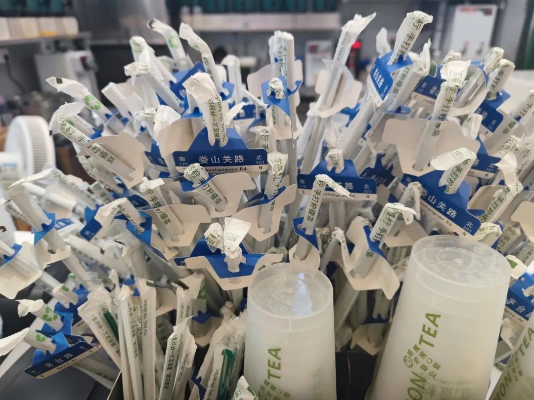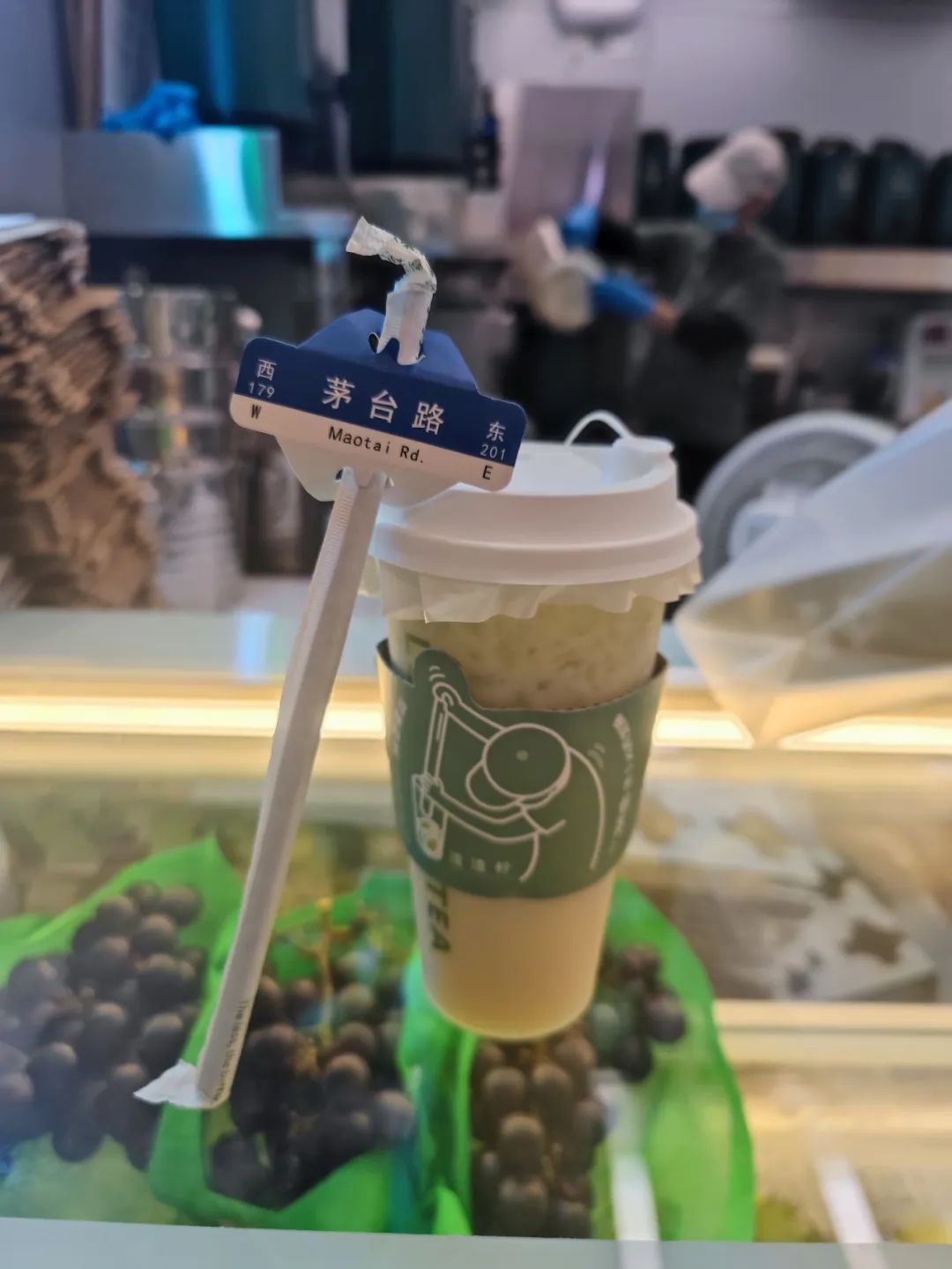 不仅有饮品本身的特色,他家的吸管也让人眼前一亮!柜台上堆了一叠“路名牌”的海洋,仔细一看都是附近的路名——娄山关路和茅台路。