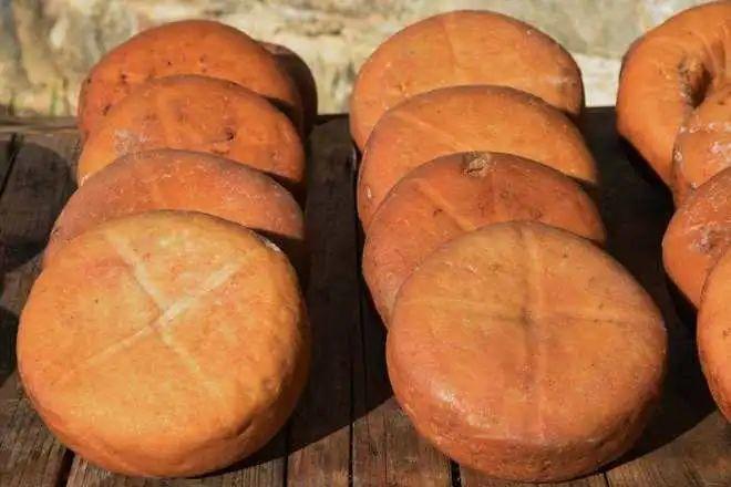 “腊八豆腐”是安徽省黟县地区民间传统小吃之一,因其历史悠久,风味独特,具有徽州文化底蕴,有“豆腐火腿”之美称。每年农历十二月初八前后,黟县家家户户都要晒制豆腐,民间将这种自然晒制的豆腐,俗称“腊八豆腐”。它选取优质黄豆,泉水碘盐,天然香料,采用传统的制作工艺,外形有点像柿饼。品色泽黄润如玉,入口松软,咸中带甜,又香又鲜。