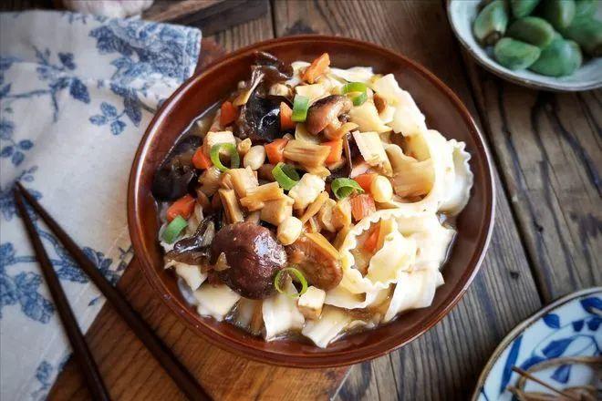 传统腊八面会加入各种豆类,做法比较复杂,浇头是用8种食材制作而成,寓意:八方来财,面面俱到,寓意新的一年顺顺利利,健康长寿。