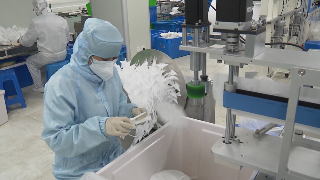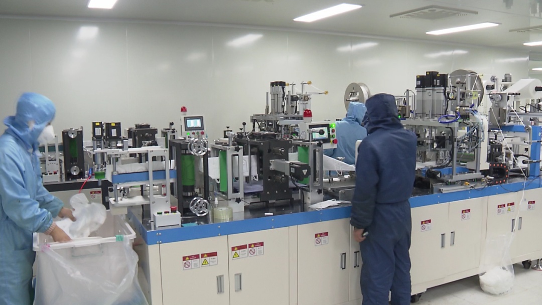 我们原先只有一条生产线,每天的口罩产能是10万只左右,现在增加到了三条生产线,一天的产能达30万只左右。