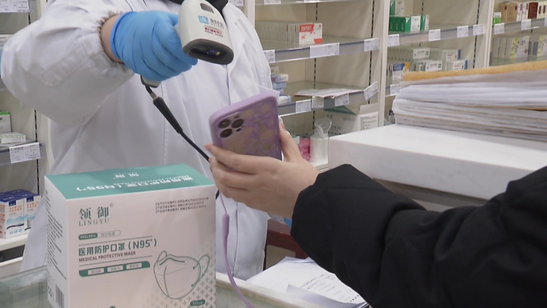 而在上海恒德大药房华氏金山第一药店里,工作人员正在上架刚刚到货的一批防疫物资。