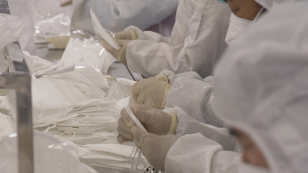 为了增加产能,在金山区枫泾工业园区内的这家口罩生产企业里,新上线了两条口罩生产线,工人们一刻不停地生产着N95口罩。