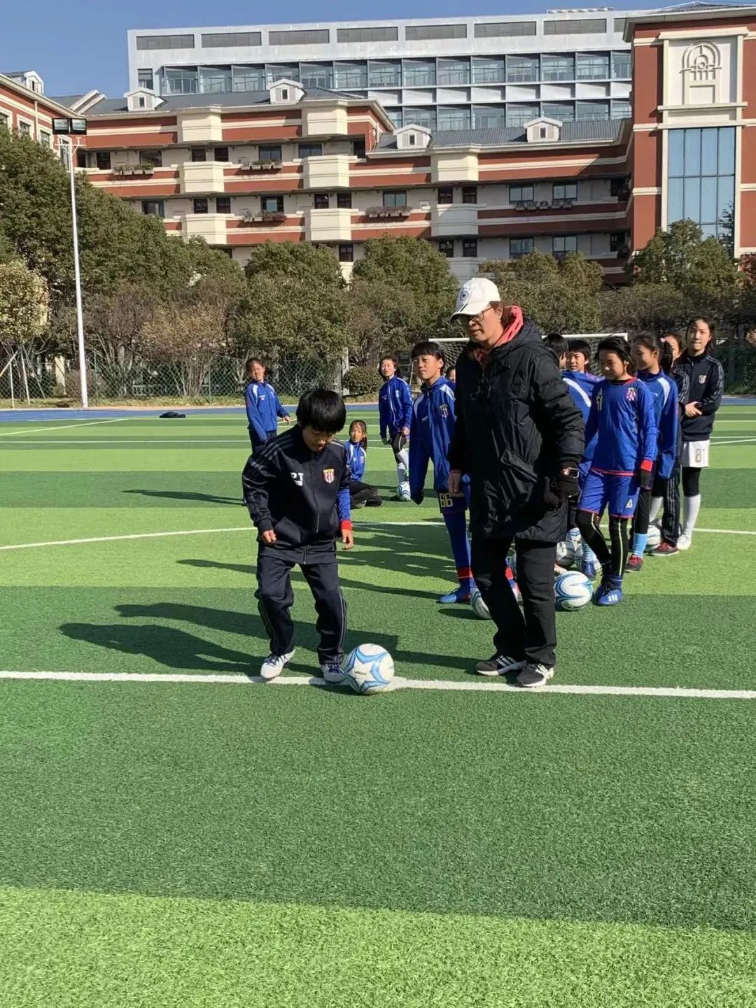 虽然已经取得了这么好的成绩,但张翔还是有自己的烦恼:“我们足校最困扰我的还是场地问题。一定要给孩子一片场地,他们才能更好地训练。”没有场地、没有时间,张翔和他的教练们只能“螺丝壳里做道场”,利用每一分每一秒加紧训练:“我们只能在训练方法上进行改变,体锻课,老师在跑道上留三分之一, 我们做基本训练。等到5点15分放学后,我们增加一点对抗性训练。平时时间不足,我们早操补40分钟技术训练,双休日增加一两堂课,增加对抗性训练。”