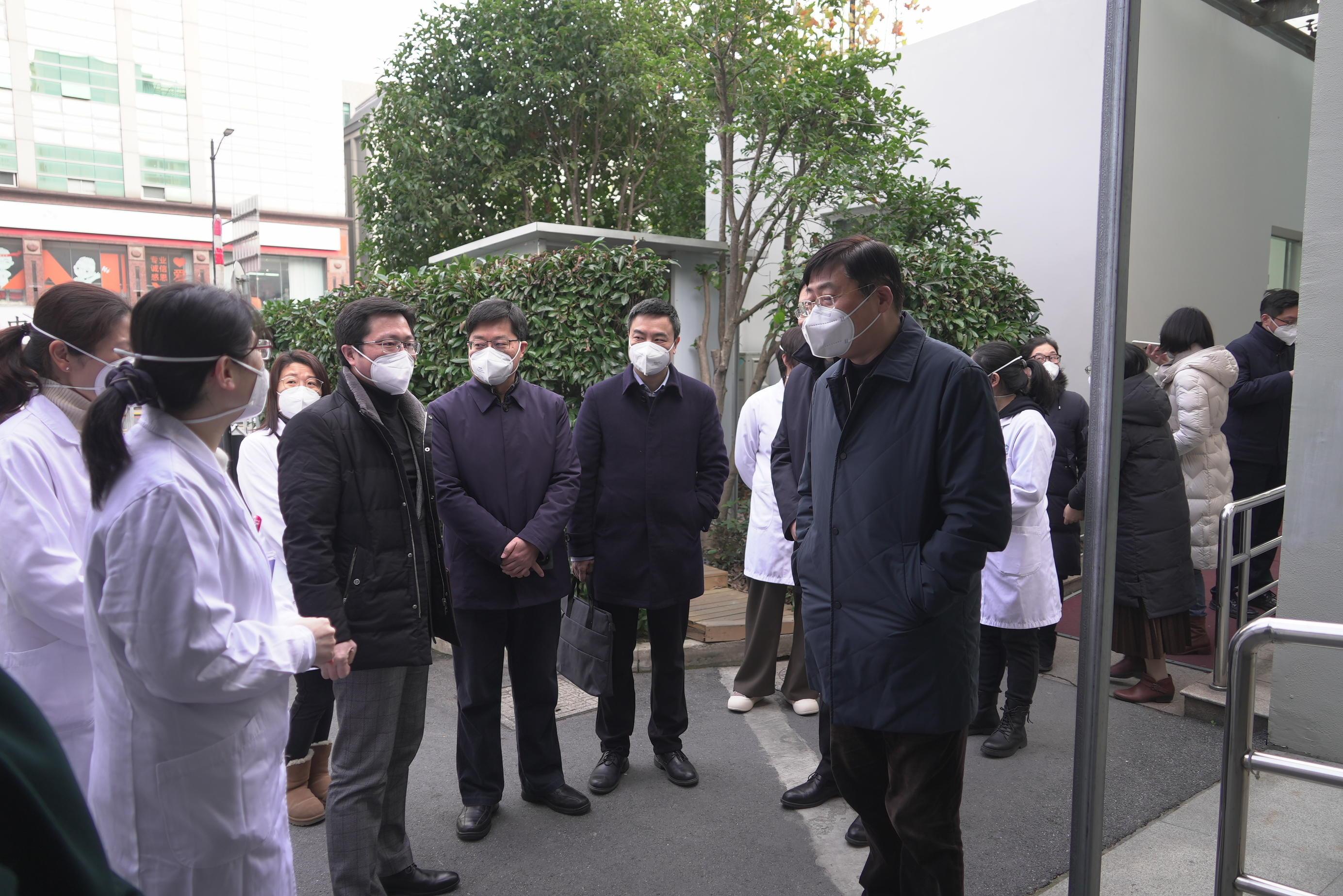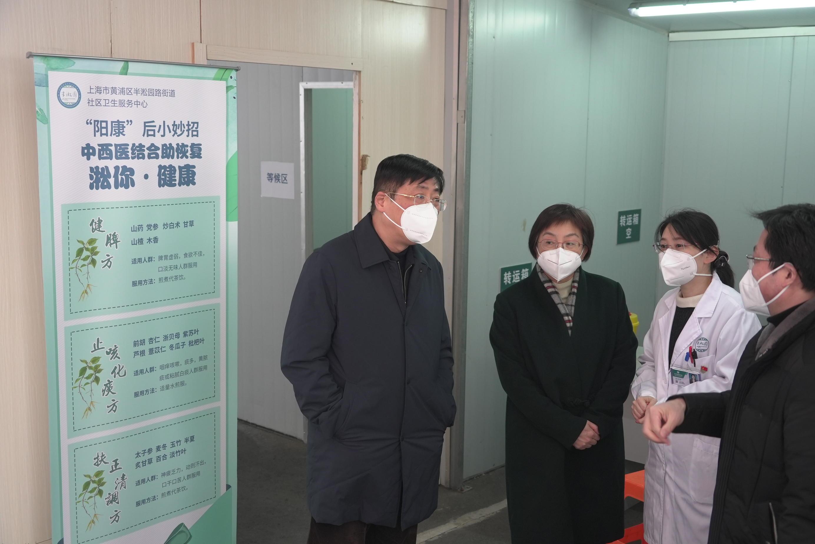 12月30日下午,区委书记杲云分别前往半淞园路街道社区卫生服务中心和九院黄浦分院,实地查看社区卫生服务中心和发热诊室运行情况,调研发热门诊设置、药品供应和医护人员在岗等工作,亲切慰问连日来克服各种困难,持续坚守一线救治岗位的广大医护工作者。副区长袁园参加调研。