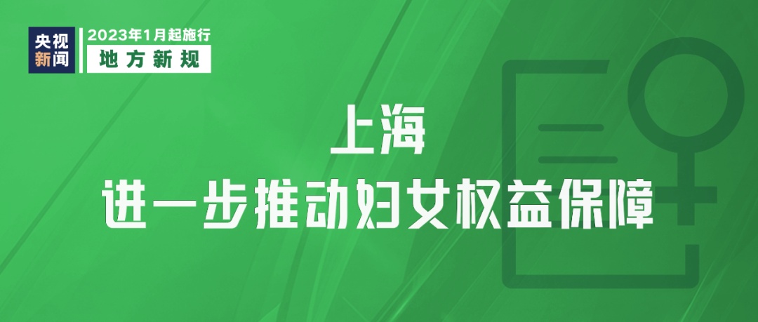 《上海市妇女权益保障条例》2023年1月1日起施行,明确禁止就业歧视,将性别歧视行为纳入劳动保障监察范围;明确对家庭暴力行为处置,把预防和制止家庭暴力工作纳入各地区、各单位平安建设工作范围。