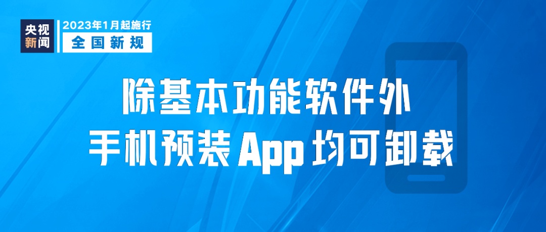 工信部、国家网信办进一步规范移动智能终端应用软件预置行为。2023年1月1日起,生产企业应确保移动智能终端中除基本功能软件外的预置应用软件均可卸载,并提供安全便捷的卸载方式供用户选择。
