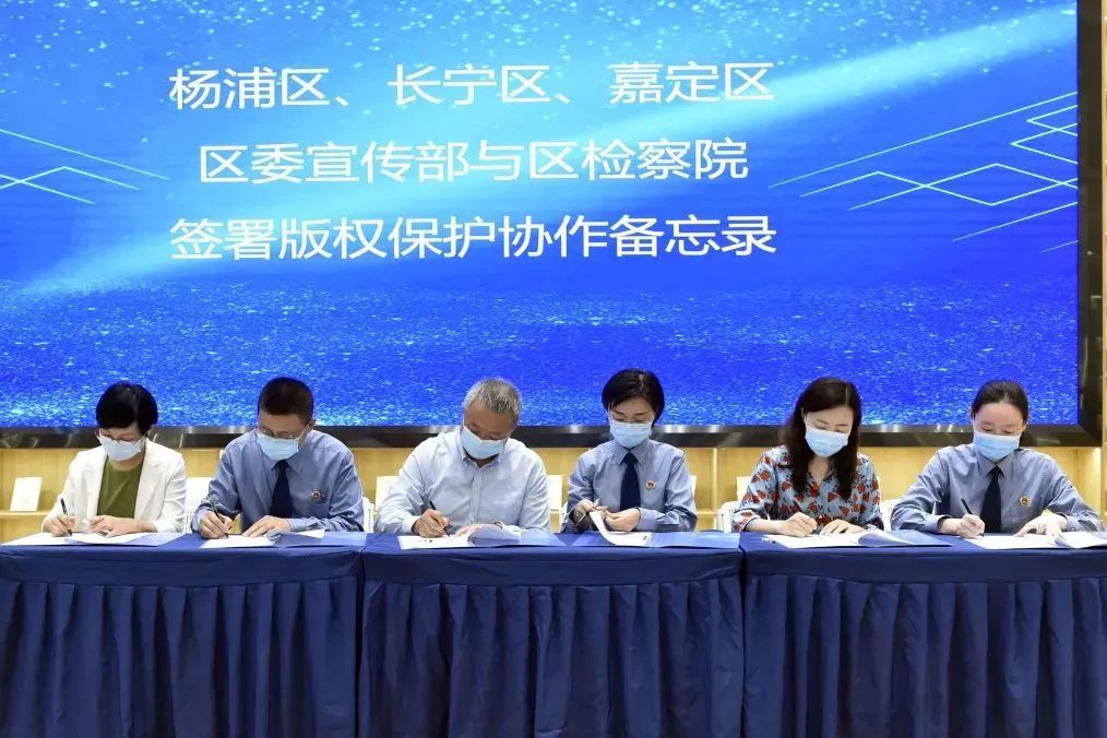 9月13日上海市版权局与上海市人民检察院联合召开2022年上海版权保护工作新闻发布会。长宁、杨浦、嘉定区委宣传部分别与三区检察院签署《加强版权保护合作备忘录》,以形成版权保护合力。