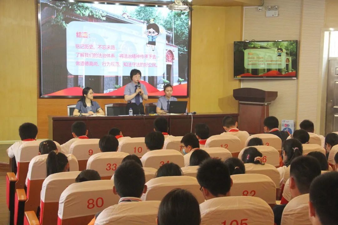 9月,黄浦区检察院未检办检察官莫苇菁、姜一辉来到校园,讲述了中共一大会址见证的党史沿革、黄浦检察院百年老楼的前世今生以及人民检察的发展历程,希望学生们能传承百年法治精神,争做守法护法卫士。