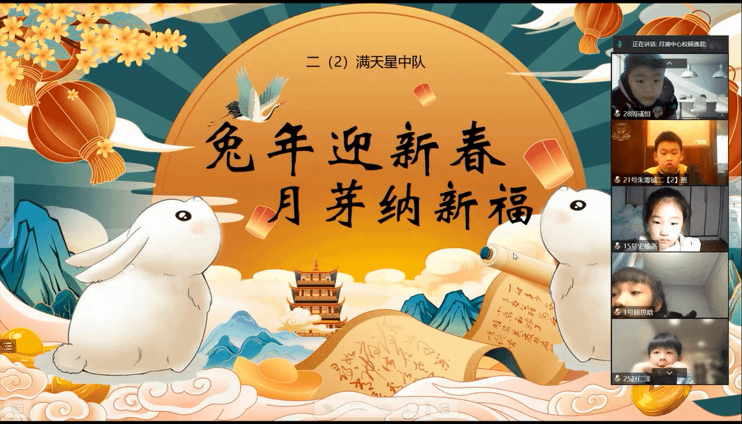 宝山区月浦中心校各班级在线上组织开展了“兔年迎新春,月芽纳新福”主题迎新活动。活动中,虽然没有华丽的舞台和绚丽的灯光,但阻挡不了孩子们的热情。