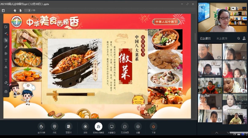 在班会课的直播间里,孩子们一起感受祖国不同地域饮食文化的魅力。