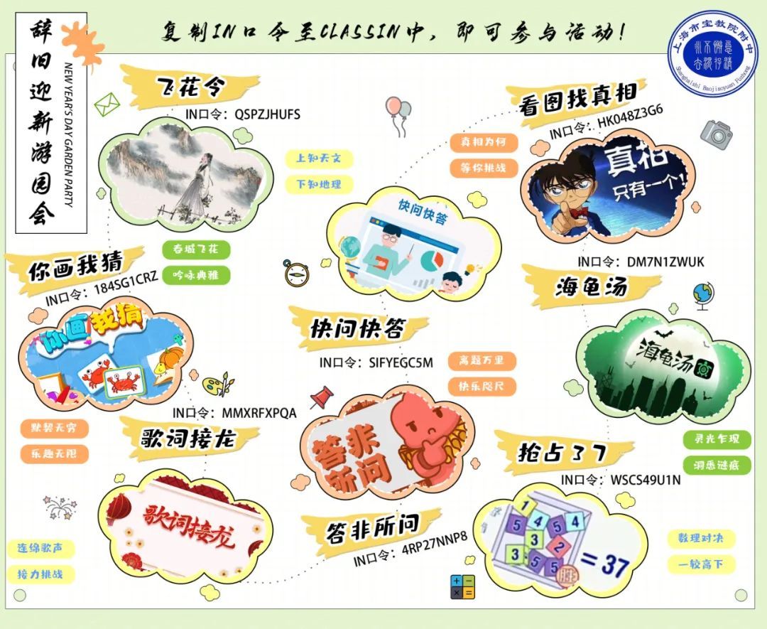 即便只能相聚云端,也能开展丰富多彩的迎新年活动。宝山区教育学院附属中学的队员们在大队部的组织下,借助直播教室互动功能,开启了热闹的线上游园会,让队员们在接受节日文化气息熏陶的同时,也能在其乐融融的线上互动中感受集体的温暖,共同辞旧迎新。