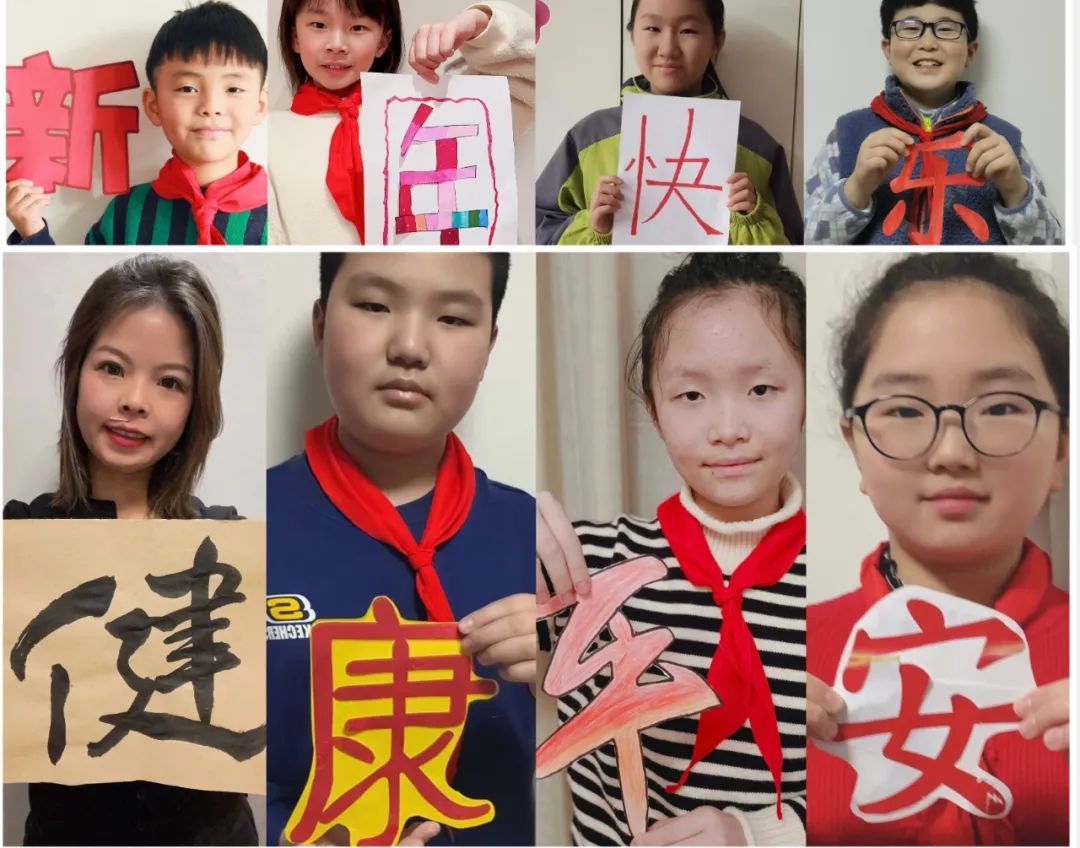 同样是相聚云端,宝山区通河新村第二小学大队部举办了主题为“春和希望,将扑面而来”的喜迎元旦活动,大队辅导员组织并带领队员们一起行动:画美字、组拼图、拍视频、送祝福,为全校师生送上一份新年的美好祝愿。