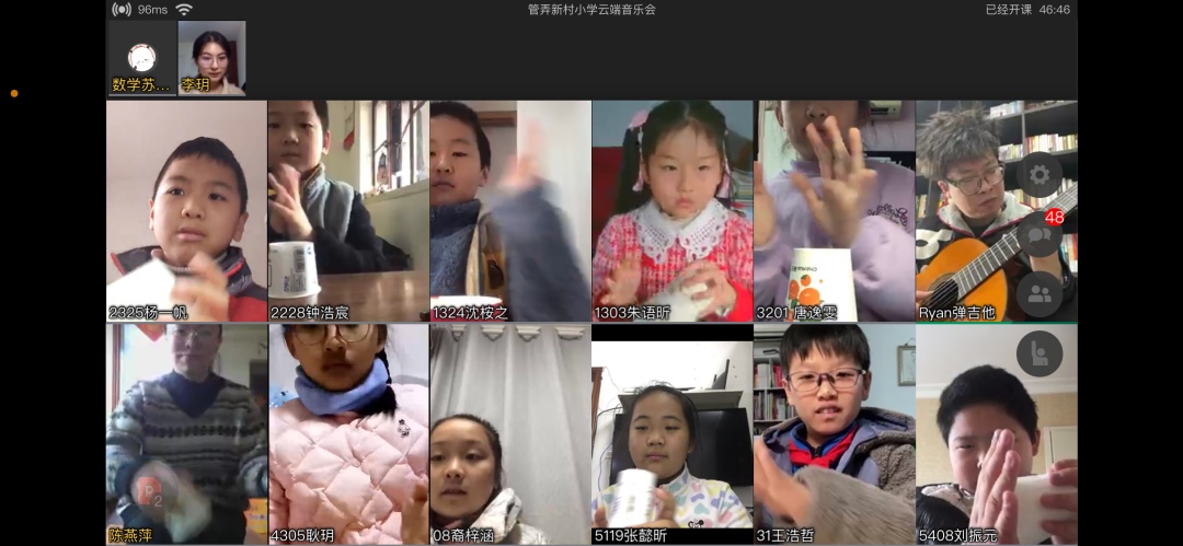 孩子们拿起身边任何一种乐器,没有乐器也没关系,家里的杯子一样可以。屏幕前,所有的同学都参与演奏,干脆、有力的节奏在云端交汇,不输现场的热烈,让孩子们兴奋不已。
