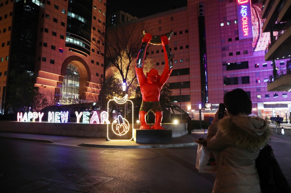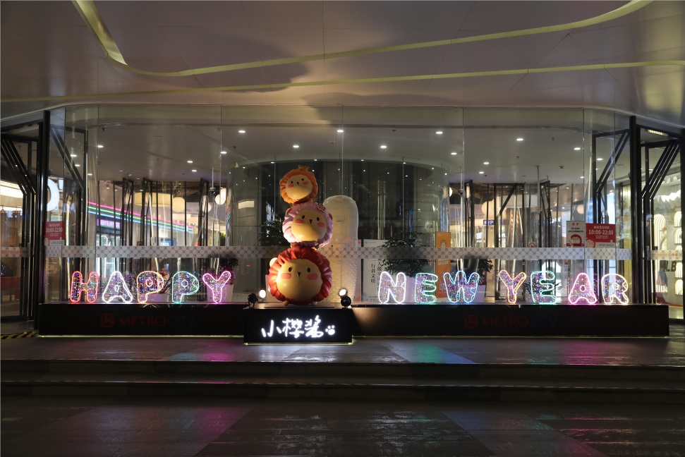 美罗城以“HAPPY NEW YEAR”新年字样率先拉开帷幕,门口萌态十足的卡通人物迎接着市民的到来。今年以“潮博会”为主题,美罗城上演现象级潮流艺术聚场,三组大型室外雕塑展品,吸引市民驻足拍照打卡。