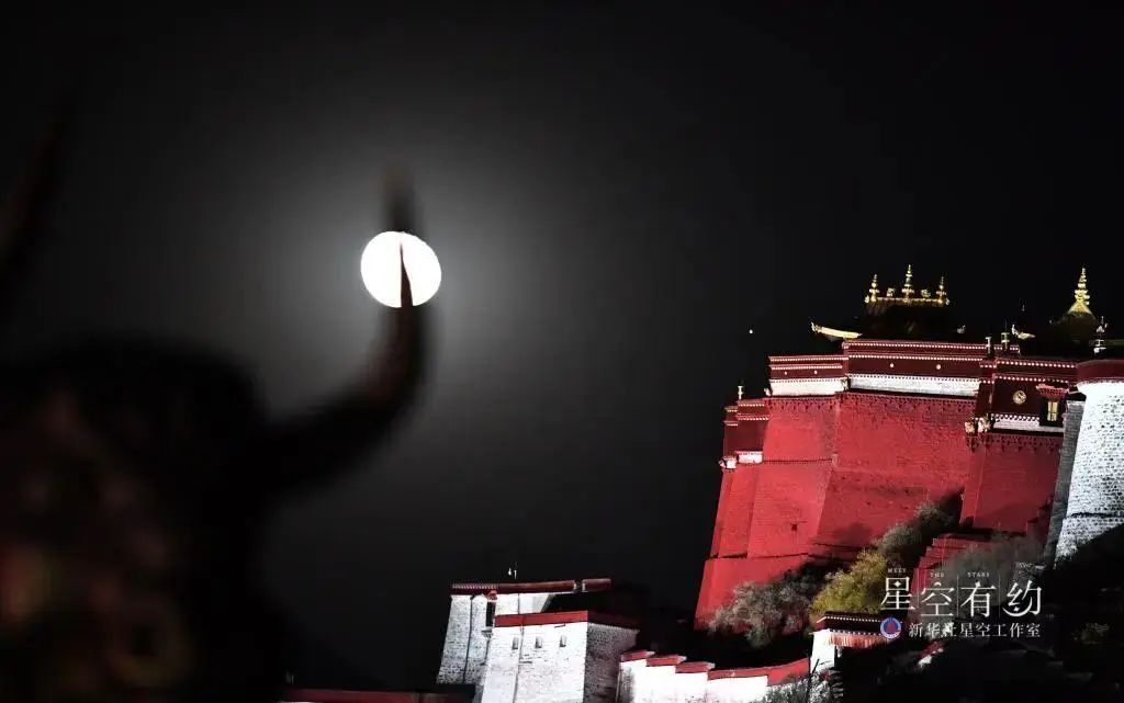 这是2022年11月11日晚在西藏拉萨市布达拉宫附近拍摄的火星合月。(新华社记者觉果 摄)