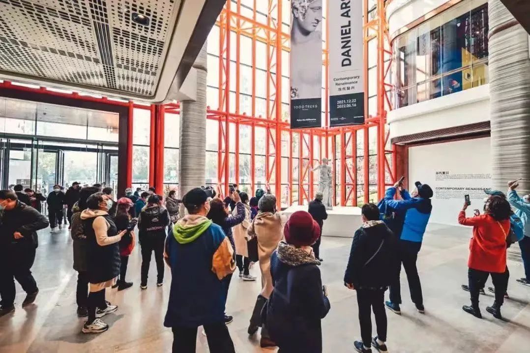 天安千树内部整体构造极具设计感,楼梯的采光天井、GRFC穿孔面板天花板、艺术巨幕......人们可以在不同楼层的角度去欣赏这个宏伟空间。在天安千树你可以尽情探索潮流艺术生活,整个商场共引进了160多家重磅品牌,横跨潮流、美食、生活以及文化艺术多个领域,一站式承包你的吃喝玩乐。