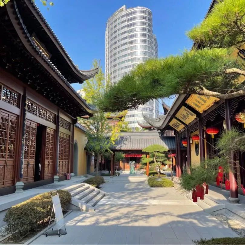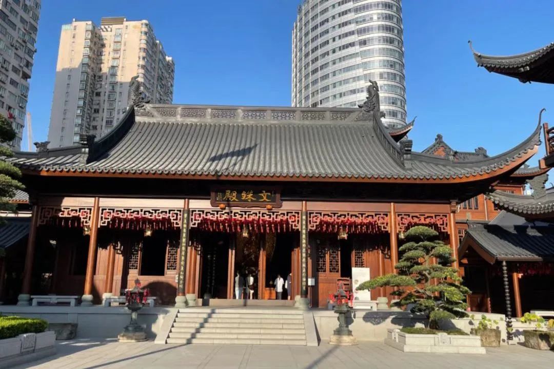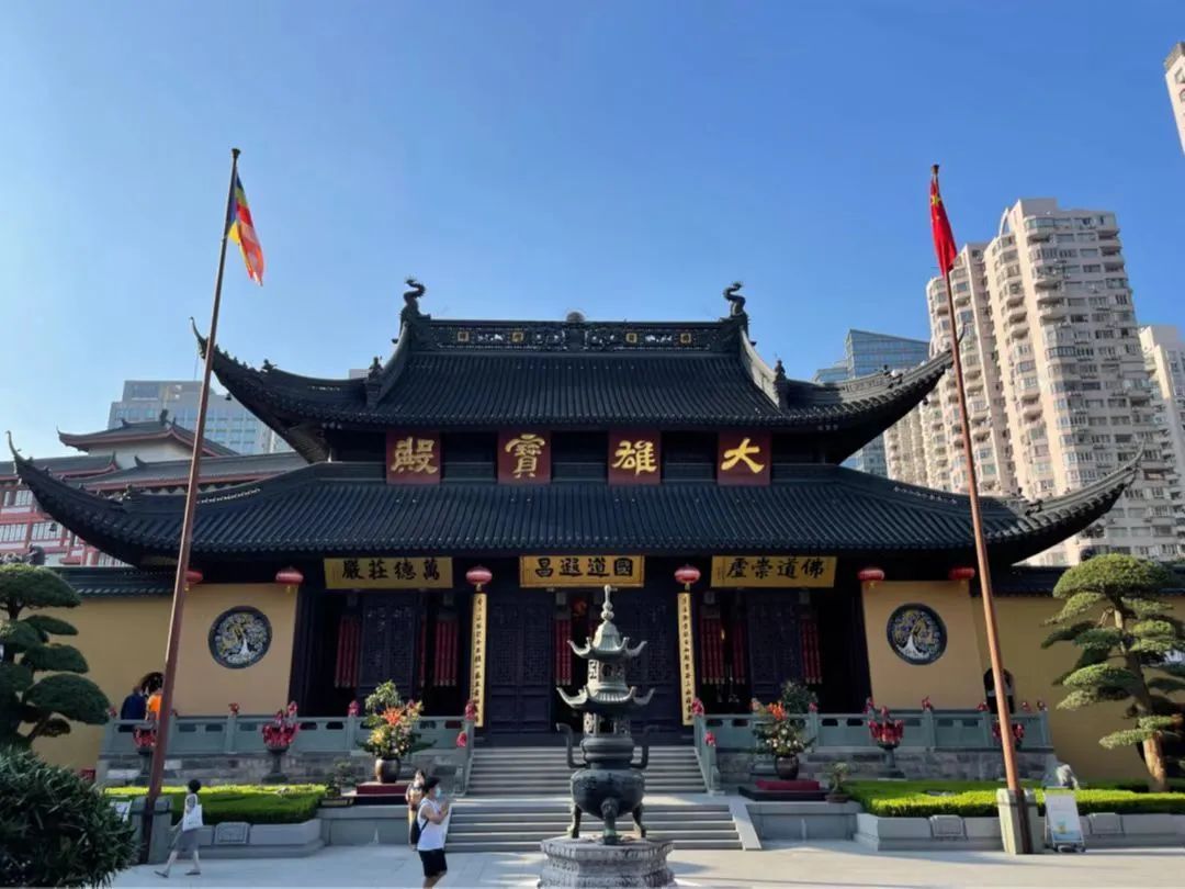 往前追溯,玉佛禅寺于2014年启动了建寺以来最大规模的一次修缮工程。除了对文物建筑天王殿、大雄宝殿进行保护修缮,还改建两庑建筑,恢复东西配殿格局。之后,还参照江南古建筑专著《营造法原》中的殿延建筑风格,在新腾出的地块加盖了钟鼓楼及观音殿,使得寺内更开阔安全。