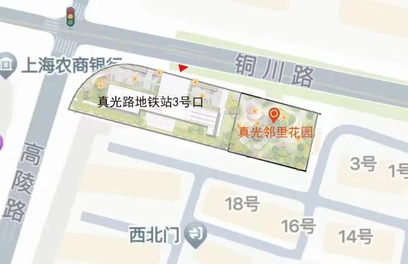 真光邻里花园位于铜川路高陵路口,为14号线真光路站出入口创造了一个良好的环境,还绿于民,让城市出行更有“颜值”。该花园综合考虑车站出入口的人流量、城市转角良好的景观昭示性及引导性,结合周边社区生活的需求,置入功能空间和植物,创造城市邻里花园景观,展现“15分钟社区生活圈”活力的色彩,让市民享受到城市建设的发展成果。