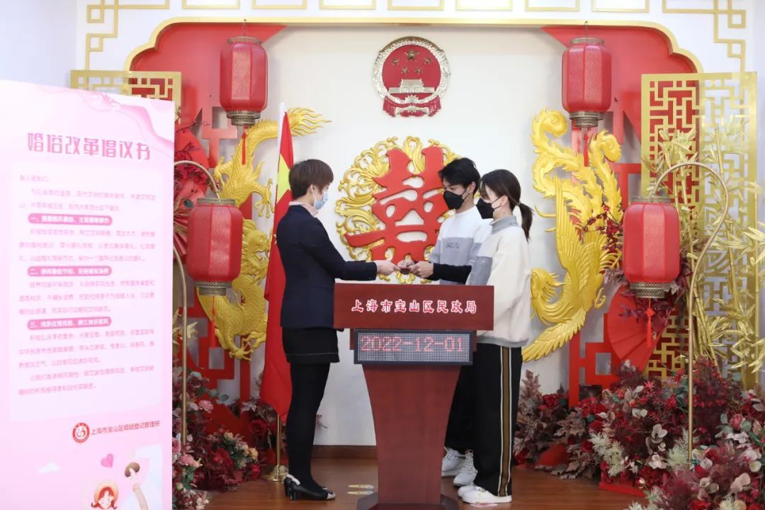 12月1日,随着上海实行内地居民婚姻登记业务“全市通办”,宝山区迎来了首对“全市通办”新人。