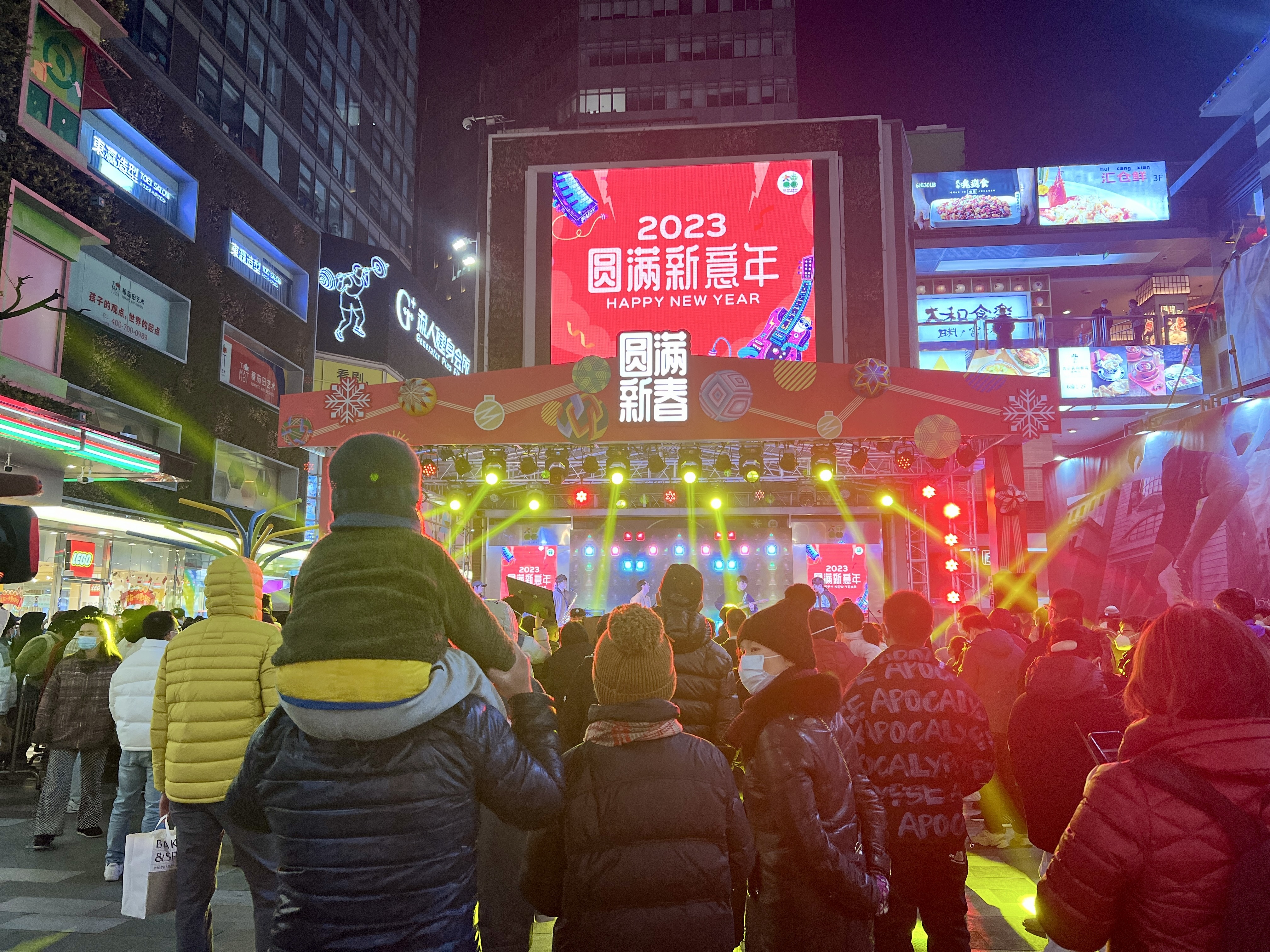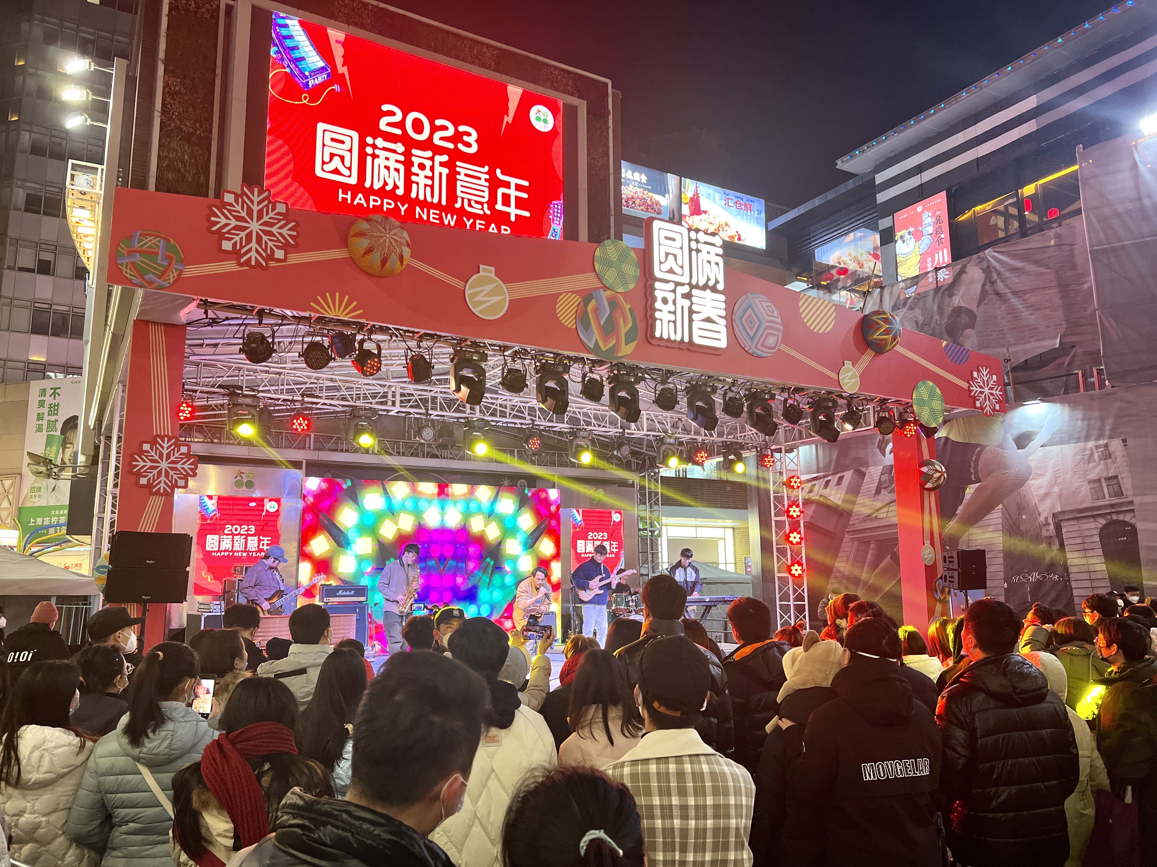众多知名歌手以及来自沪上七所大学的校园歌手、乐队来到中心广场舞台零距离演唱,共迎2023年的到来。