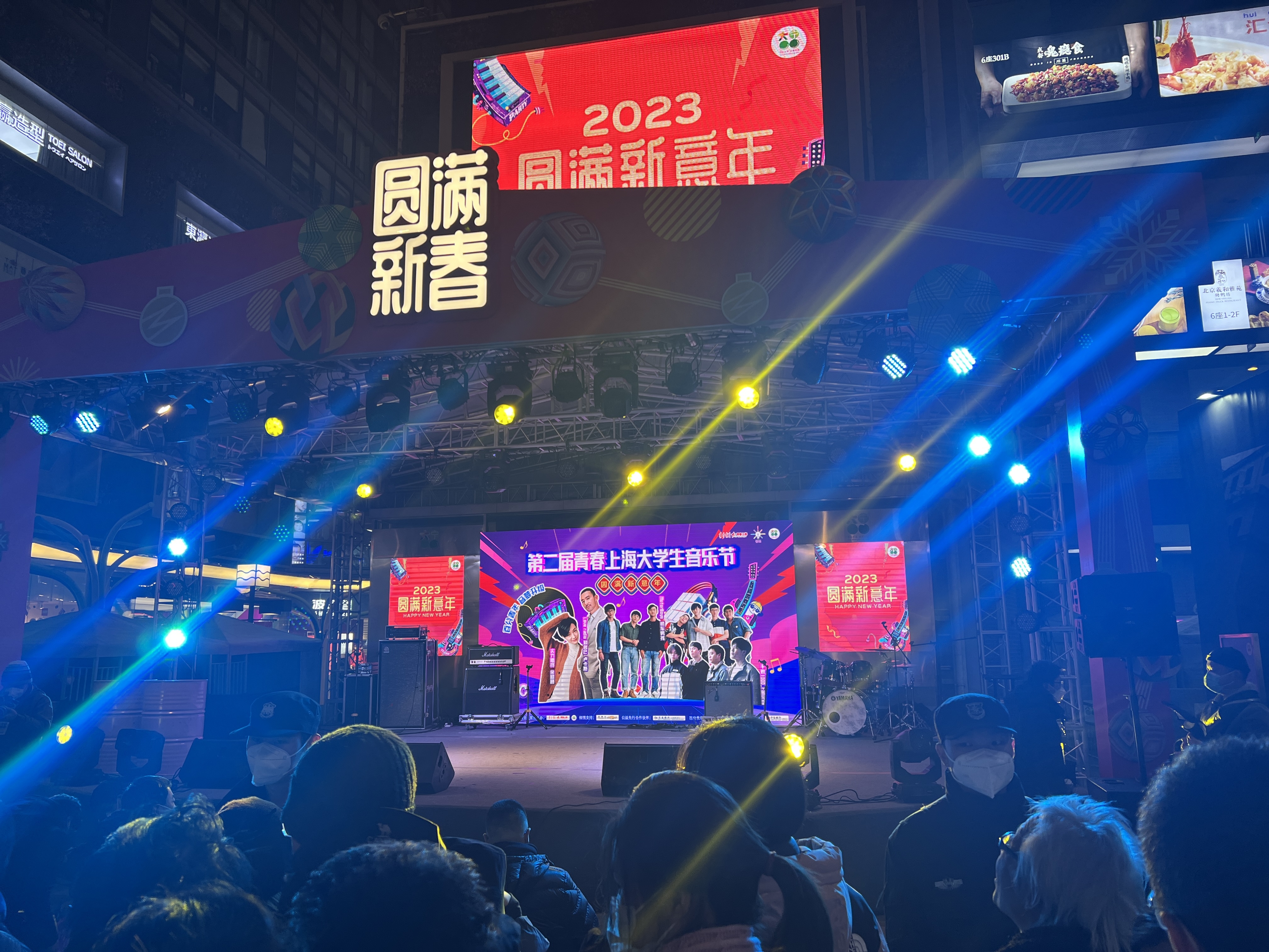 在2022年的最后一天,寓意着“圆满新意年”美好祝愿的第二届青春上海大学生音乐节在大宁国际商业广场唱响了迎新的旋律。