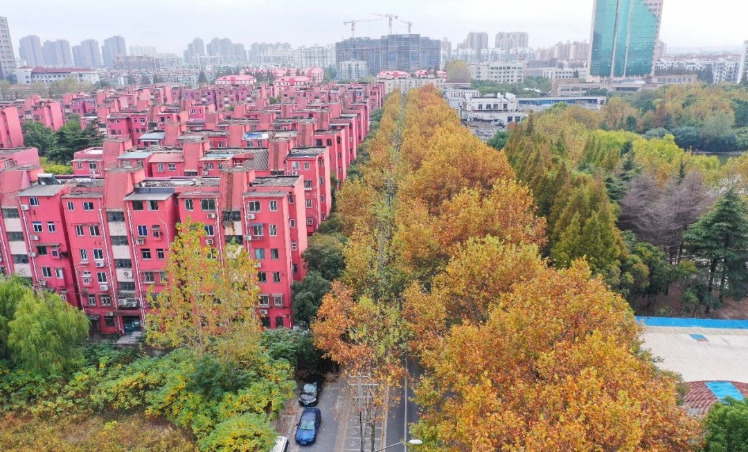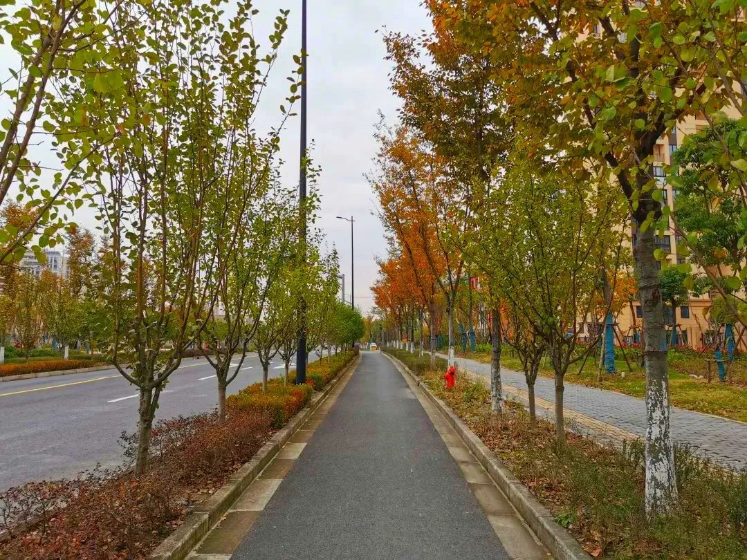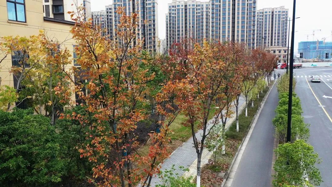 位于新顾城板块的尚北路上,榉树叶子已经变成了暗红色,成为绿化带中最靓的“仔”。