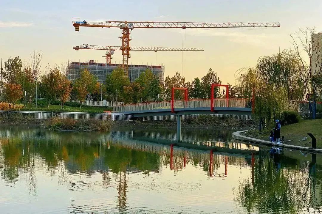 小桥碧水,绿影深红,塔吊还在工作,新的故事将从这里启航。