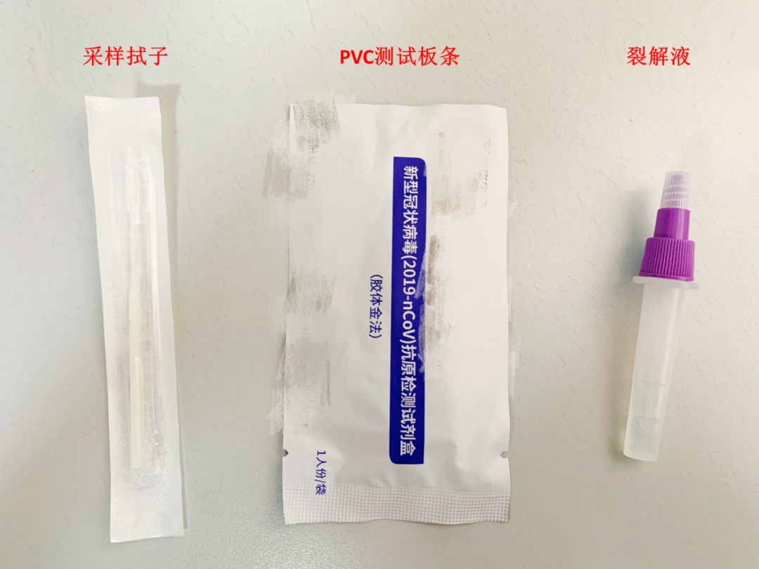 首先,让我们来看一下抗原试剂盒的组成。一般一抗原试剂盒由采样拭子+裂解液+PVC测试板条组成。