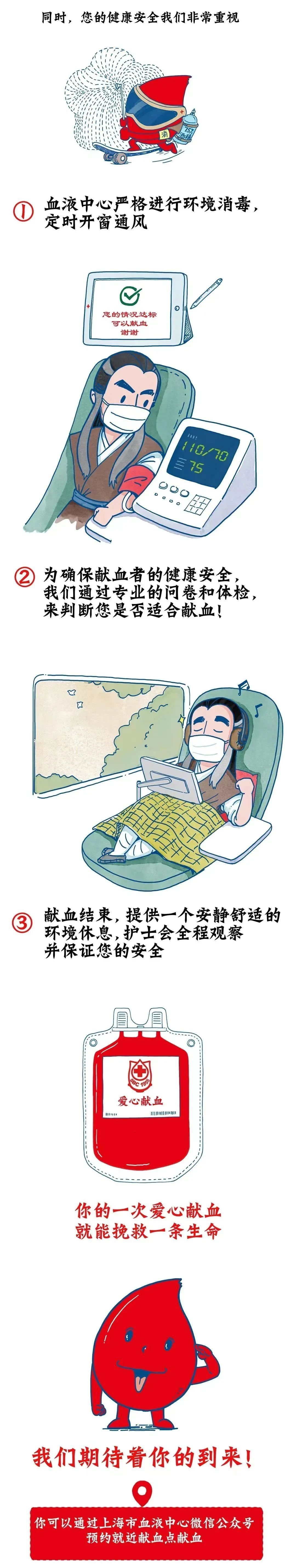 答:献血是安全的。上海市血液中心严格落实《医务人员手卫生规范》 等感染控制措施的要求。工作人员严格做好工作场所环境消毒 ,定时开窗通风,做好个人防护、手卫生和医疗废物管理等感染预防与控制工作。努力保障每一位献血者的安全。同时,市民们也可以通过上海市血液中心微信公众号选择就近献血点预约献血。