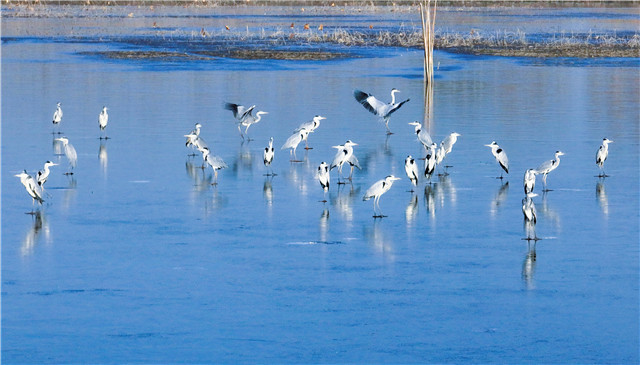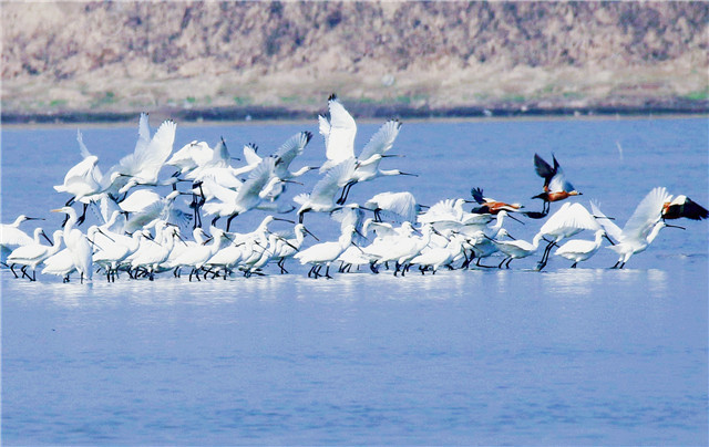 值得高兴的是,成千上万只的鸟儿在同一水面嬉戏、飞翔的“鸟浪”奇观经常被拍到,鸥鹭翔集、遮云蔽日,蔚为壮观,令人惊讶。