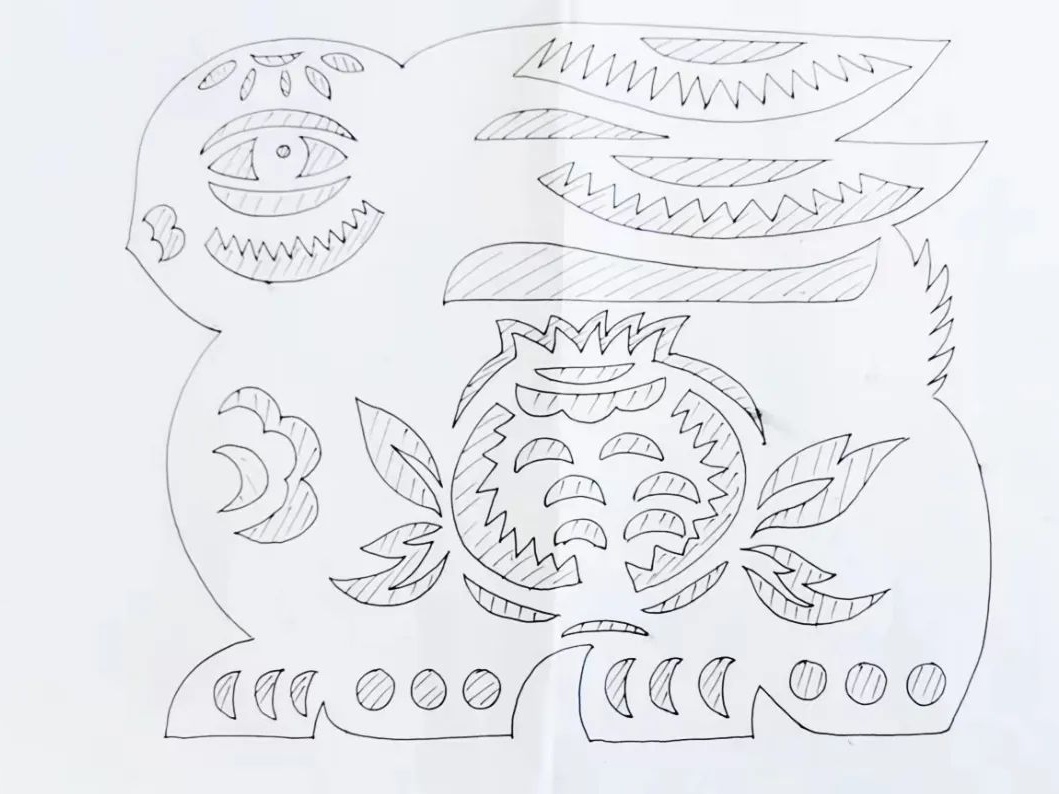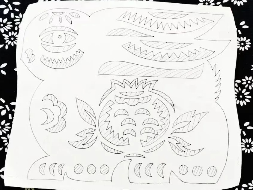 取一张白纸,画出图稿纹样,并将图稿纹样和红色纸装订在一起。