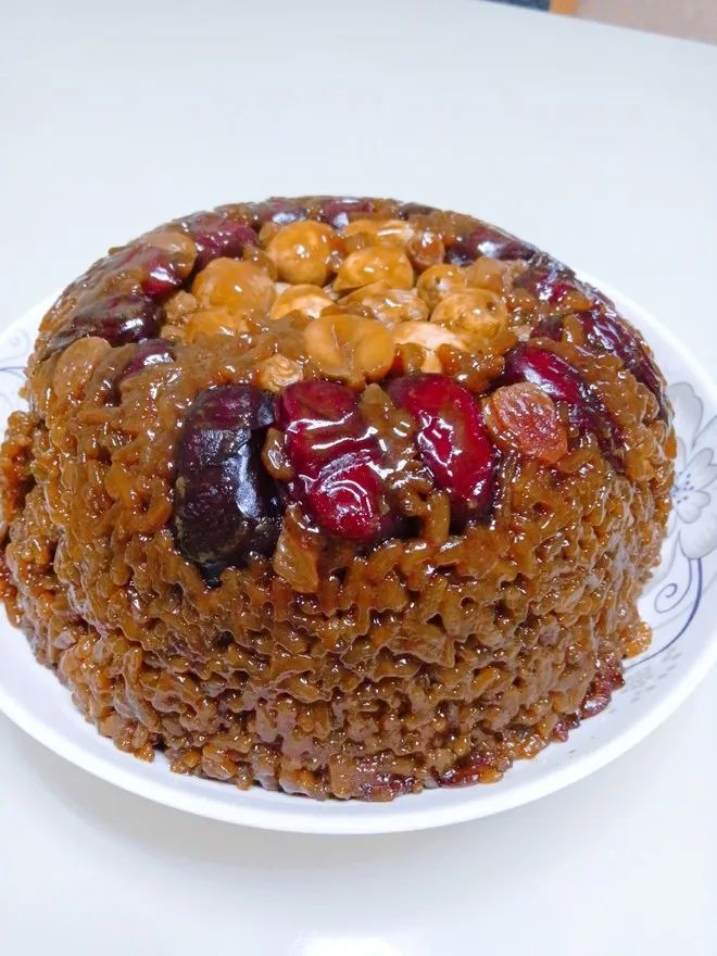 倒扣后的热乎八宝饭终于有型有款,体面的八宝饭大功告成。