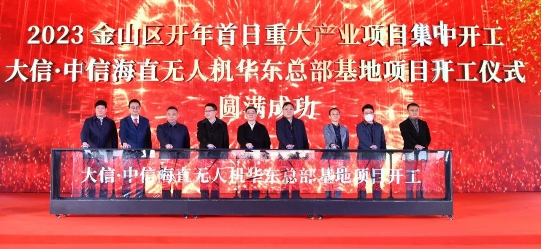 1月3日,2023年开年首日金山区重大产业项目集中开工活动暨大信·中信海直无人机华东总部基地项目开工仪式举行。本次集中开工的重大产业项目共有12个,总投资91亿元,涉及用地面积871亩。涵盖了智能装备、新材料、生命健康等多个战略新兴产业领域,高度契合金山产业发展定位,为金山产业经济高质量发展培育发展新动能,厚植发展新优势。