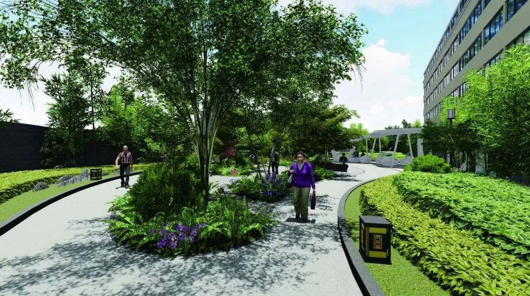 小区西南角环境清幽,植被茂密,该区域将改造成为人与自然和谐共处的生境花园。