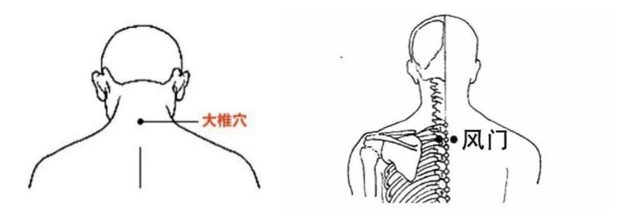 风门穴:为风邪出入之门户,善治风邪。本穴位于肩背部,风邪易袭之位,内应于肺,是治疗外邪侵犯肺卫所致诸疾常用穴。取穴方法:位于背部,当第2胸椎棘突下,旁开1.5寸。