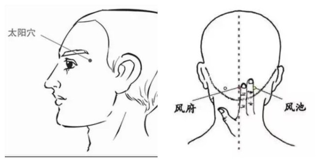 指压太阳、按揉太阳:太阳穴,在颞部,当眉梢与目外眦之间,向后约一横指的凹陷处。用双手拇指同时在双侧太阳穴下压,指压10次后,在太阳穴行按揉法,2分钟。
