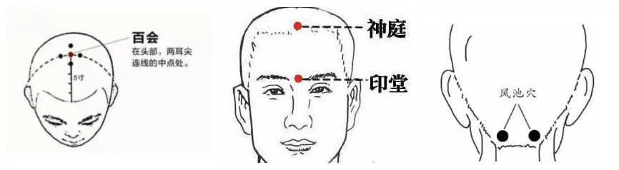 刮百会穴:二耳尖的连线的中点,头顶的前正中线上,选用角刮法3~5分钟。